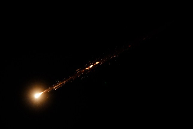 People have been arrested for filming missile strikes in the sky (Picture: Issam Rimawi/Anadolu via Getty Images)